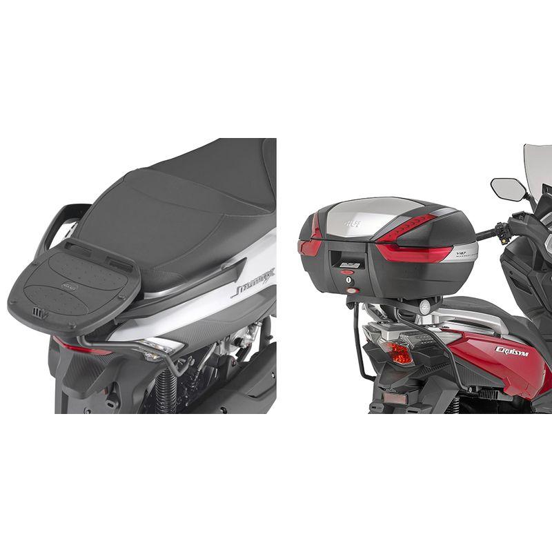 Optimisez votre scooter avec le support top case Givi, véritable allié pour vos trajets en Sym Cruisym 300.